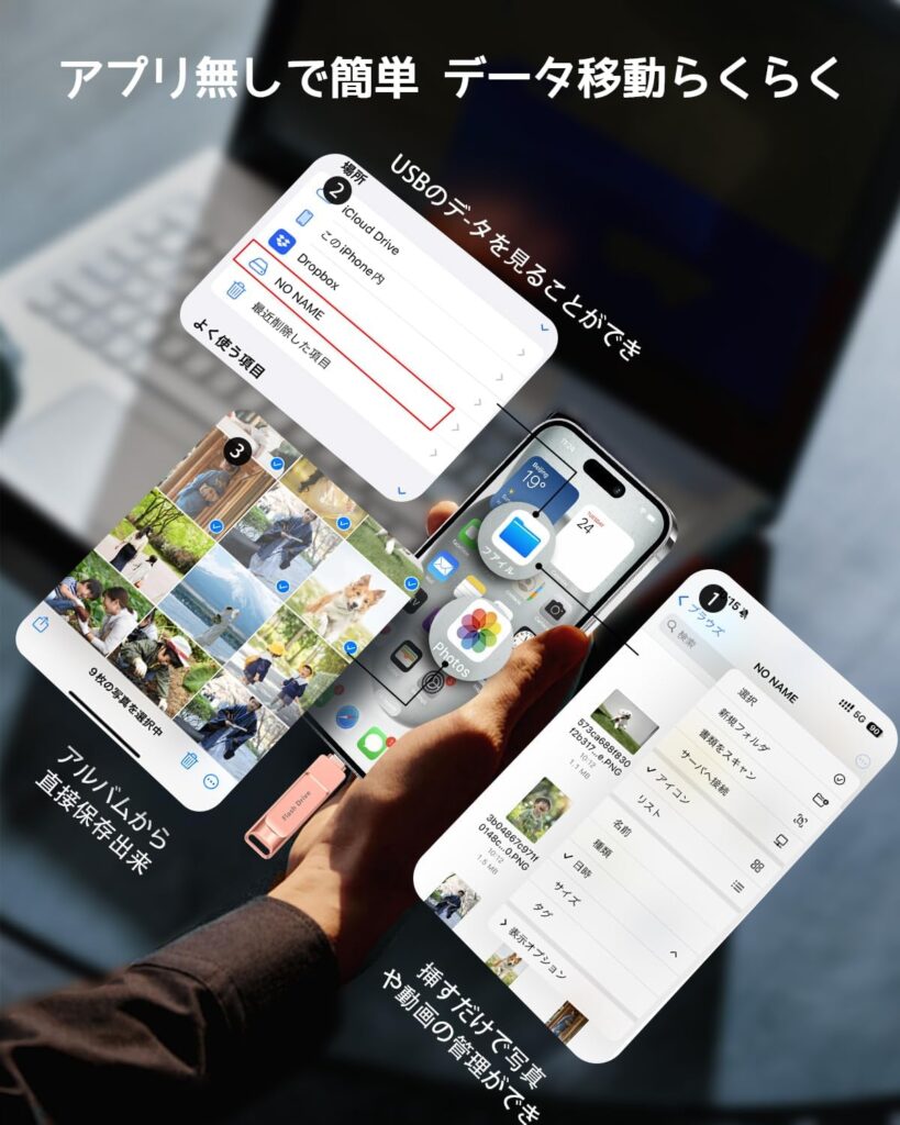 多くのスマホ用USBメモリが専用アプリのインストールを必須とする中、UD302は「アプリ不要」かつ「WiFi不要」で動作します。これは、スマートフォンの標準ファイルアプリと直接連携できる仕様であることを意味しており、OSのアップデートで専用アプリが使えなくなるという「ガジェットあるある」のリスクを回避しています。また、「512GB」という圧倒的な容量は、4K動画撮影が当たり前になったiPhone 17世代において、まさに「無限の倉庫」を手に入れたような安心感を提供します。「初心者に向けて」という設計思想が、ハードルの高いデータ管理を「ケーブルを挿すだけ」の日常動作に変えてしまった点は、100点満点の評価に値します。