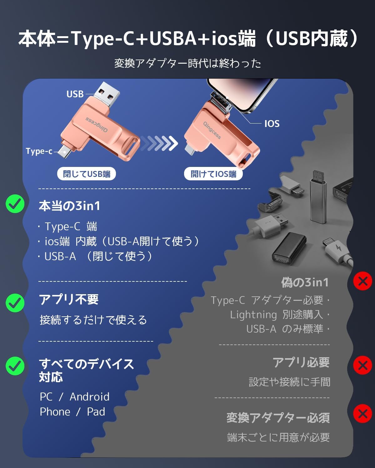 - その他対応:アイフォン全シリーズ/ パソコン/ Type-Cスマホ/ Androidスマホ /タブレットなど