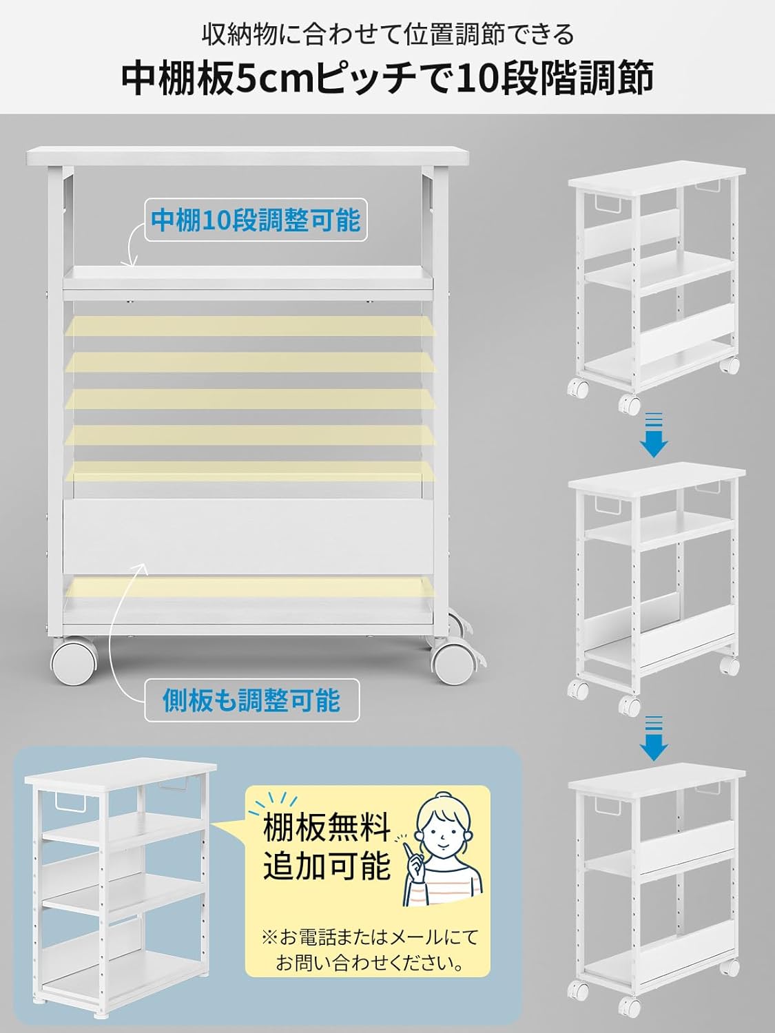 - 中棚:5cm 間隔で10段階の高さ調節が可能