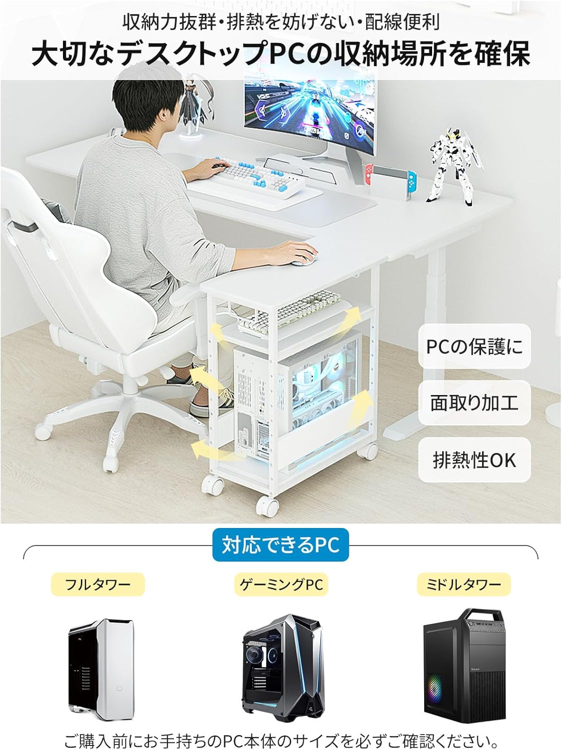 - 拡張性:L 字デスク化、CPU ワゴン化、サイドテーブル化が可能