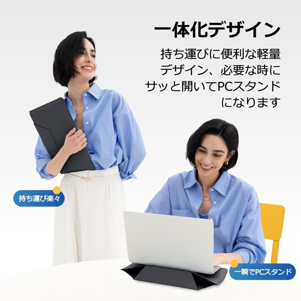 この製品の最大の魅力は、保護ケースとしての「静」の機能と、ワークスタンドとしての「動」の機能がシームレスに融合している点にあります。一般的なケースは移動時の保護に特化していますが、MOFTはPCを取り出した瞬間、そのケース自体が生産性を高めるツールへと変貌します。