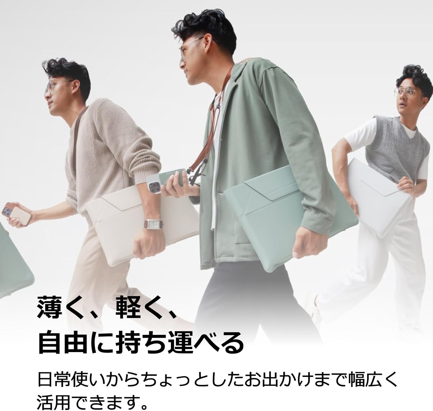 この製品の最大の魅力は、保護ケースとしての「静」の機能と、ワークスタンドとしての「動」の機能がシームレスに融合している点にあります。一般的なケースは移動時の保護に特化していますが、MOFTはPCを取り出した瞬間、そのケース自体が生産性を高めるツールへと変貌します。