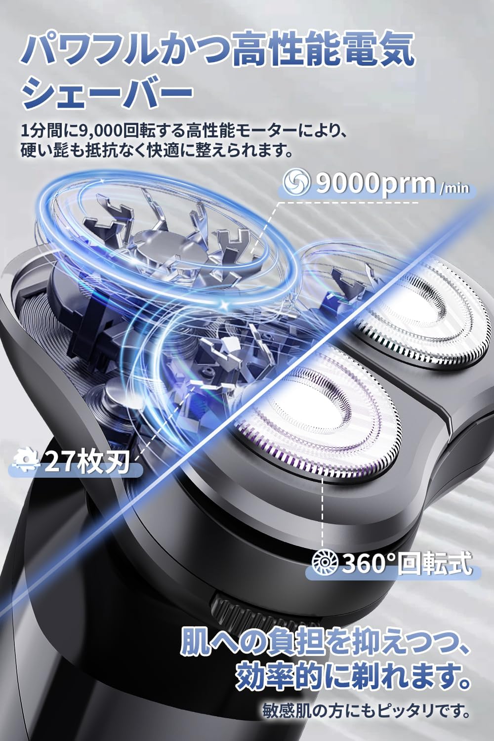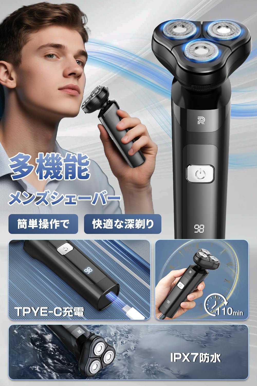 その結果、大手メーカーの入門機程度の価格で、ミドルクラスに匹敵する3枚刃の浮動ヘッドと、最新のType-C充電機能を搭載することに成功しました。