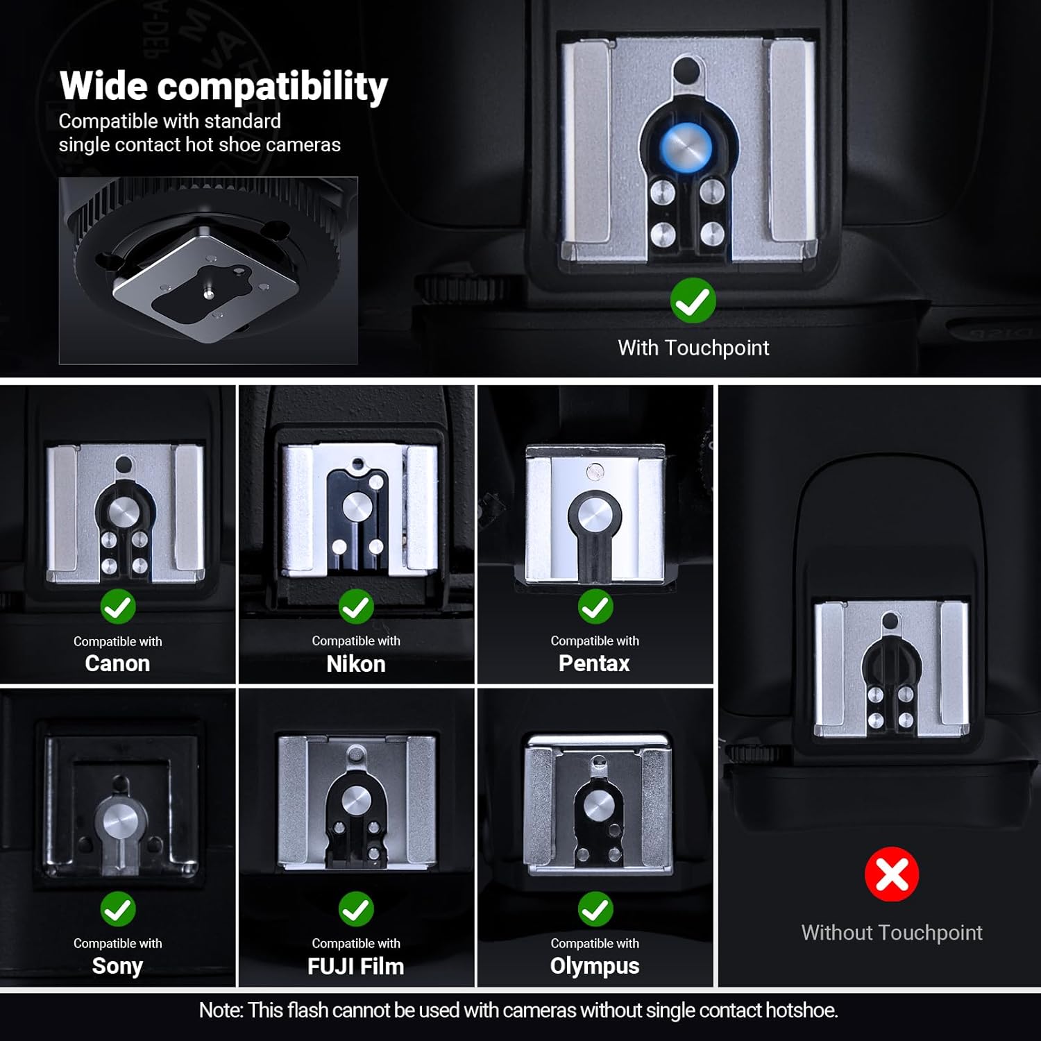 • 「ハイスピードシンクロに対応していないため、日中の屋外撮影では制限があります」