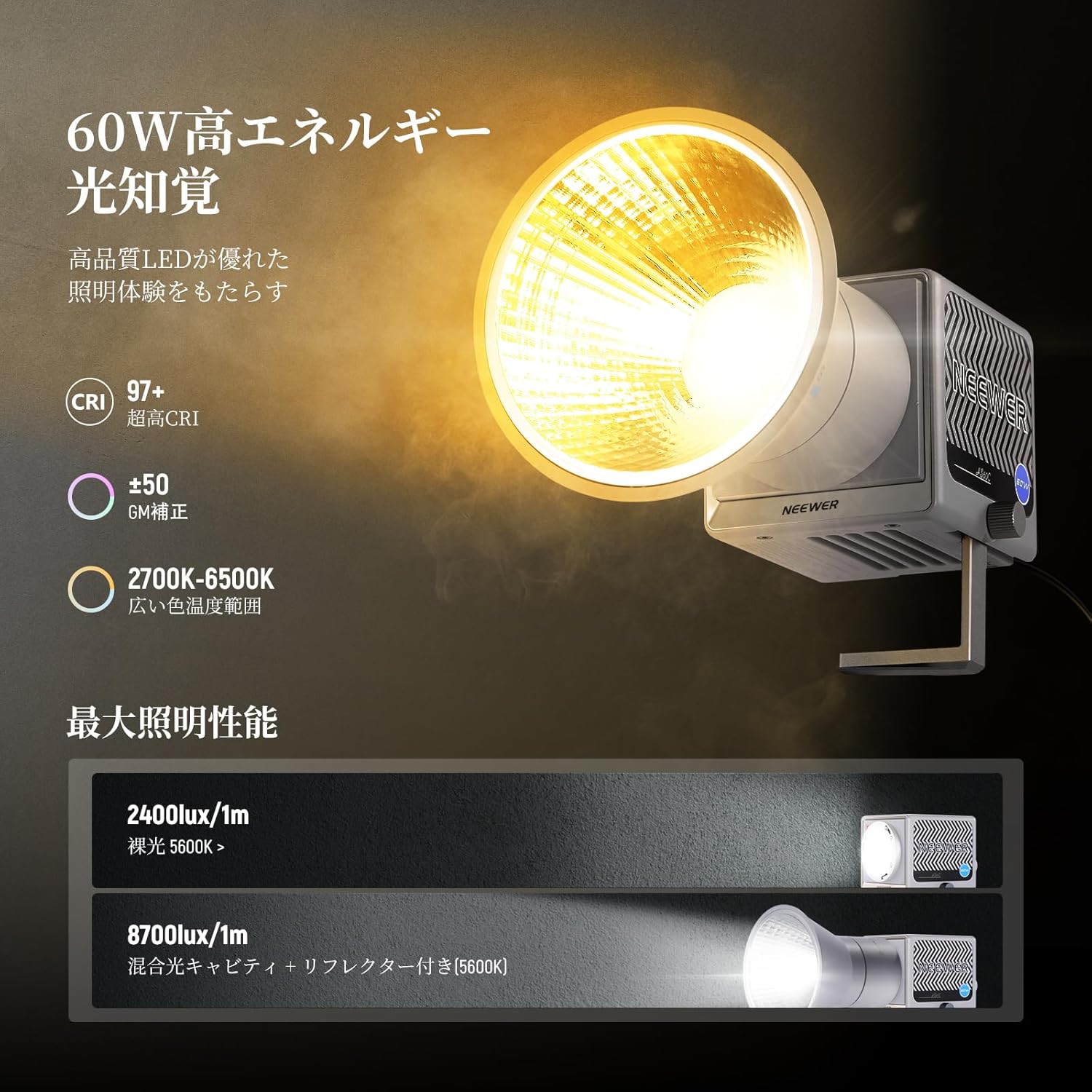 これに対し、NEEWER HS60Cの強みは圧倒的な「導入コストの低さ」です。