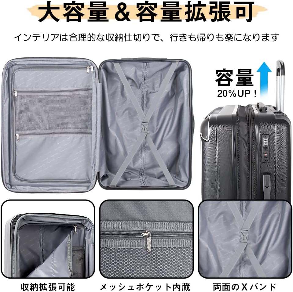 - 「この価格でこの高級感は驚きです。表面の質感がマットで傷が目立ちにくく、空港のターンテーブルでもすぐに見つけることができました。」