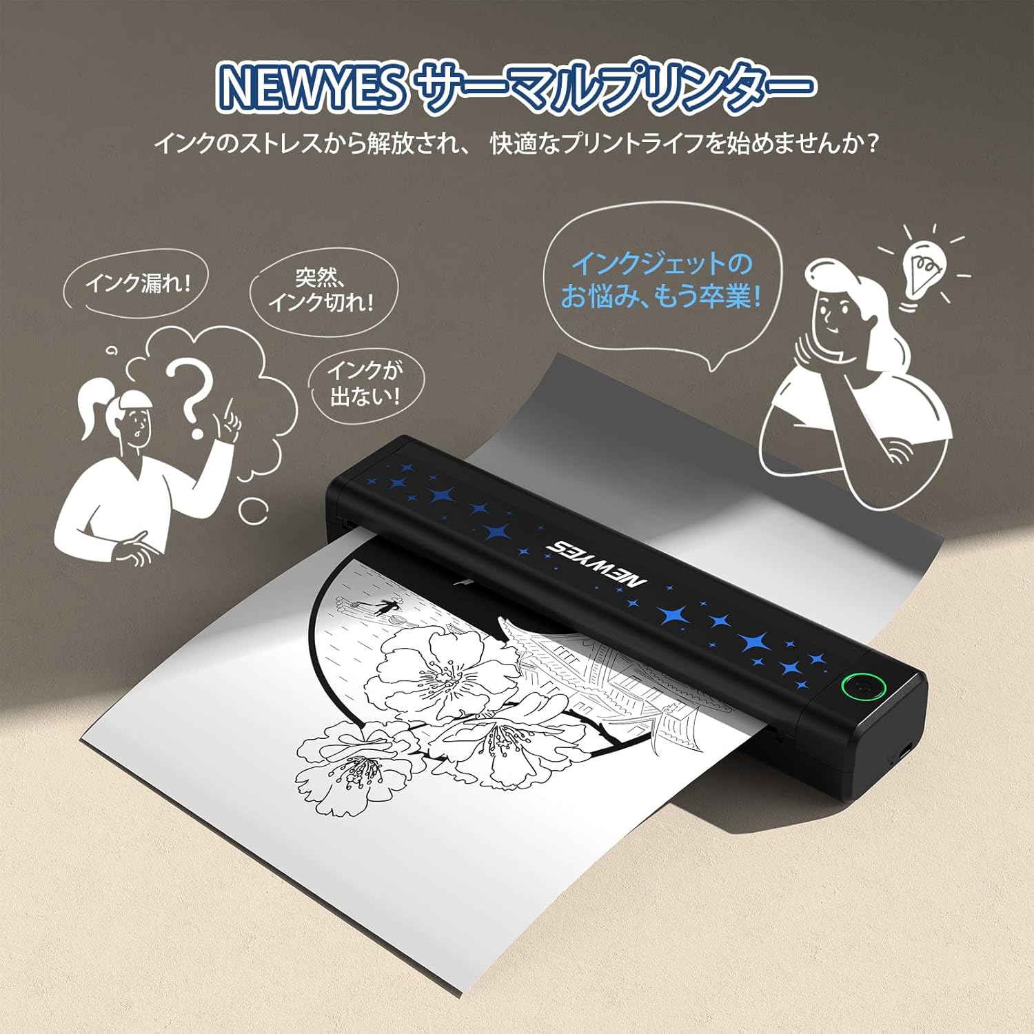 据え置き型プリンターの最大の敵は「インクの目詰まり」です。数ヶ月ぶりに使おうとしたらインクが出ない、クリーニングでインクを消費する、という経験は誰にでもあるでしょう。NEWYESのサーマル方式は、ヘッドが紙を熱するだけなので、原理的にインク詰まりが発生しません。「半年に一回しか使わない」というユーザーこそ、インクジェットではなくサーマルプリンターを選ぶべき合理的理由があります。 - 用紙コストの逆転現象
