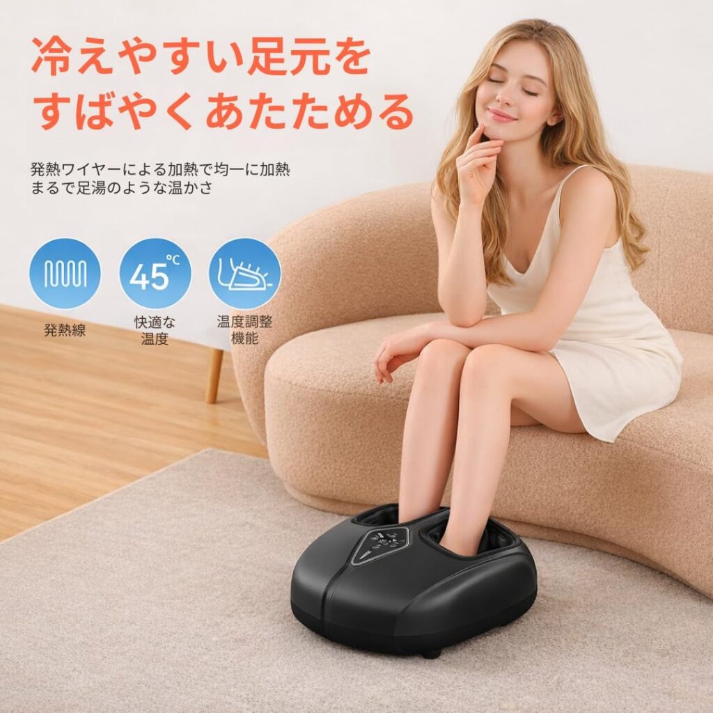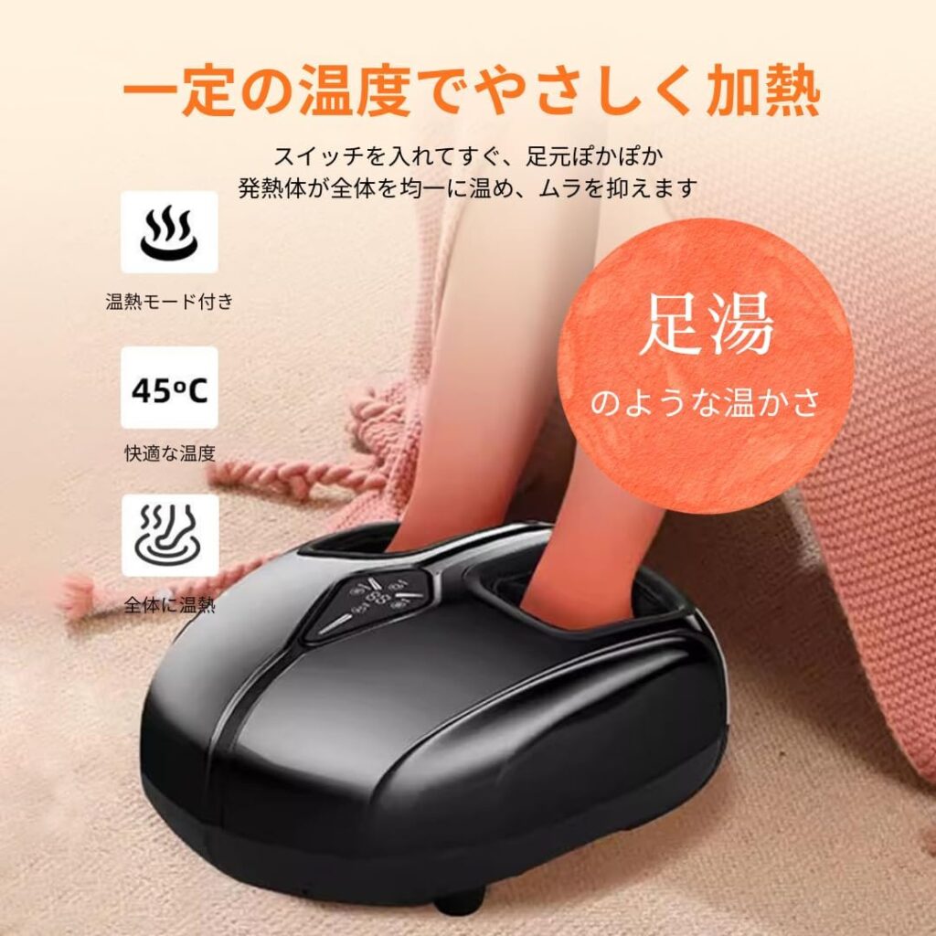 エアバッグ・回転ローラー・振動・温感ヒーターという四つの機能を一台に統合した設計は、同価格帯の競合製品と比較して機能の充実度が高く、「コストパフォーマンスの高いフットケア体験」という独自軸での差別化が実現されています。