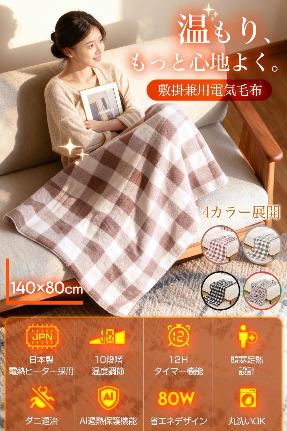 • リモートワークやリビングでの使用が多い方:140×80cmのサイズは、デスクワーク中のひざ掛けや、ソファでのブランケットとして完璧なサイズです。必要な場所だけを温めることで、効率的な暖房を実現したい方におすすめです。