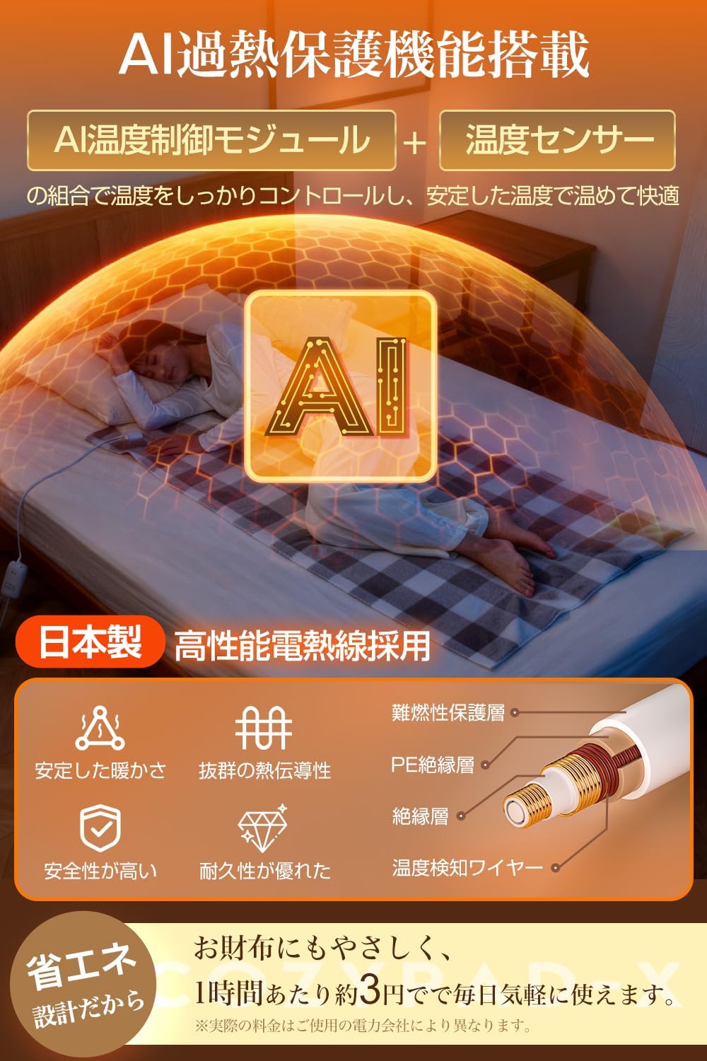 • コイズミ・広電:これらのメーカーの主力製品は、機能性と耐久性のバランスが取れています。特に、広電は「フランネル素材」や「弱酸性・保湿機能」といった、肌触りや美容に特化した高付加価値を持つ製品も展開しており、価格は「cozypad-X」よりやや高くなる傾向があります。コイズミはタイマー機能や室温センサーなど、伝統的な快適性を追求した機能が充実しているのが魅力です。