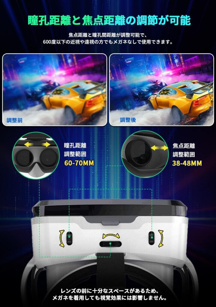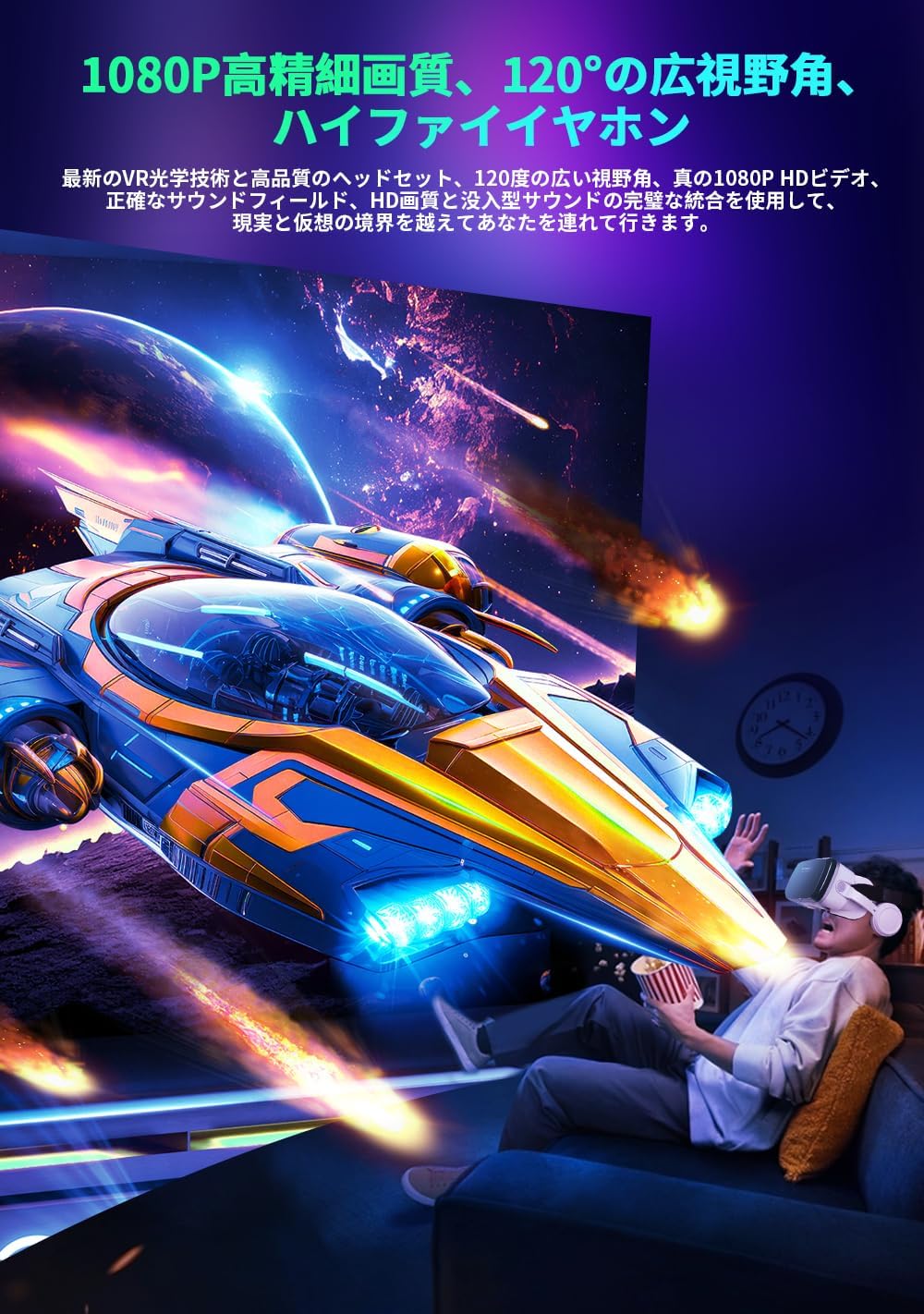 • 特徴:Bluetooth接続、ステレオサウンドヘッドセット、120度広角視野、PMMA非球面光学レンズ(ブルーライトカット、磁放射線防護)