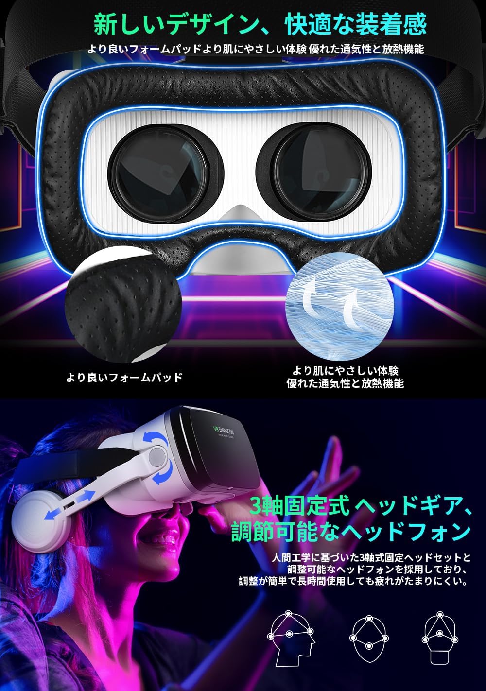 1,000円から3,000円程度で販売されている簡易的なVRゴーグルとの差は歴然としています。多くの安価なモデルは「レンズがついた箱」に過ぎませんが、G04BSはBluetooth接続によるオーディオシステムを内蔵しています。視覚だけでなく聴覚からも没入感を高めるステレオサウンドヘッドセットが一体化していることで、別途イヤホンを用意する手間が省け、装着した瞬間にエンターテインメント空間が完成します。