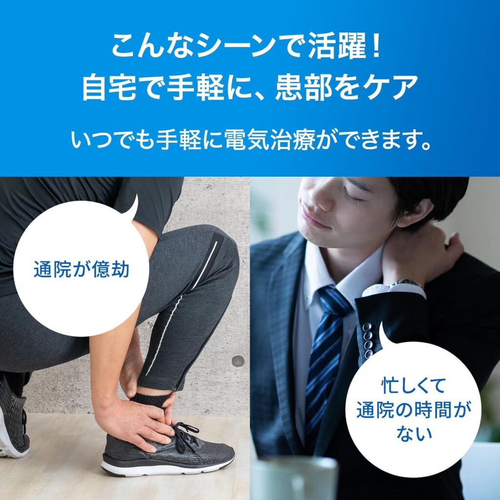 また、有線コードを2本使用するスタイルは、広範囲を一度に治療できるメリットがある反面、装着したまま室内を自由に動き回るのには不向きです。リラックスタイムに腰を据えて使用することを前提とした設計であり、「移動しながら」「家事をしながら」といった「ながら利用」を最優先するユーザーにとっては、少々大掛かりに感じられる可能性があります。