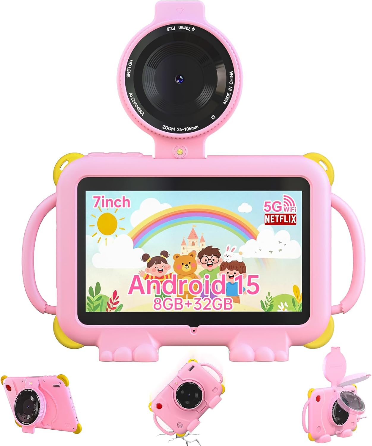 7インチという画面サイズは、スマートフォンの小さな画面を凝視することによる目の負担を軽減しつつ、10インチクラスの大型タブレットのように場所を取らない絶妙なサイズ感を実現しています。また、前後ともに5MP(500万画素)のカメラを搭載している点は見逃せません。低価格帯のキッズタブレットでは、カメラ性能が極端に低い(200万画素以下など)ことが珍しくありませんが、本機は子供が日常の風景や家族の顔を撮影し、創造力を育むためのツールとして十分な性能を備えています。Android OSを採用しているため、親御さんが使い慣れたインターフェースで直感的にアプリの管理や設定が行える点も、子育て世代に寄り添った大きなメリットと言えます。