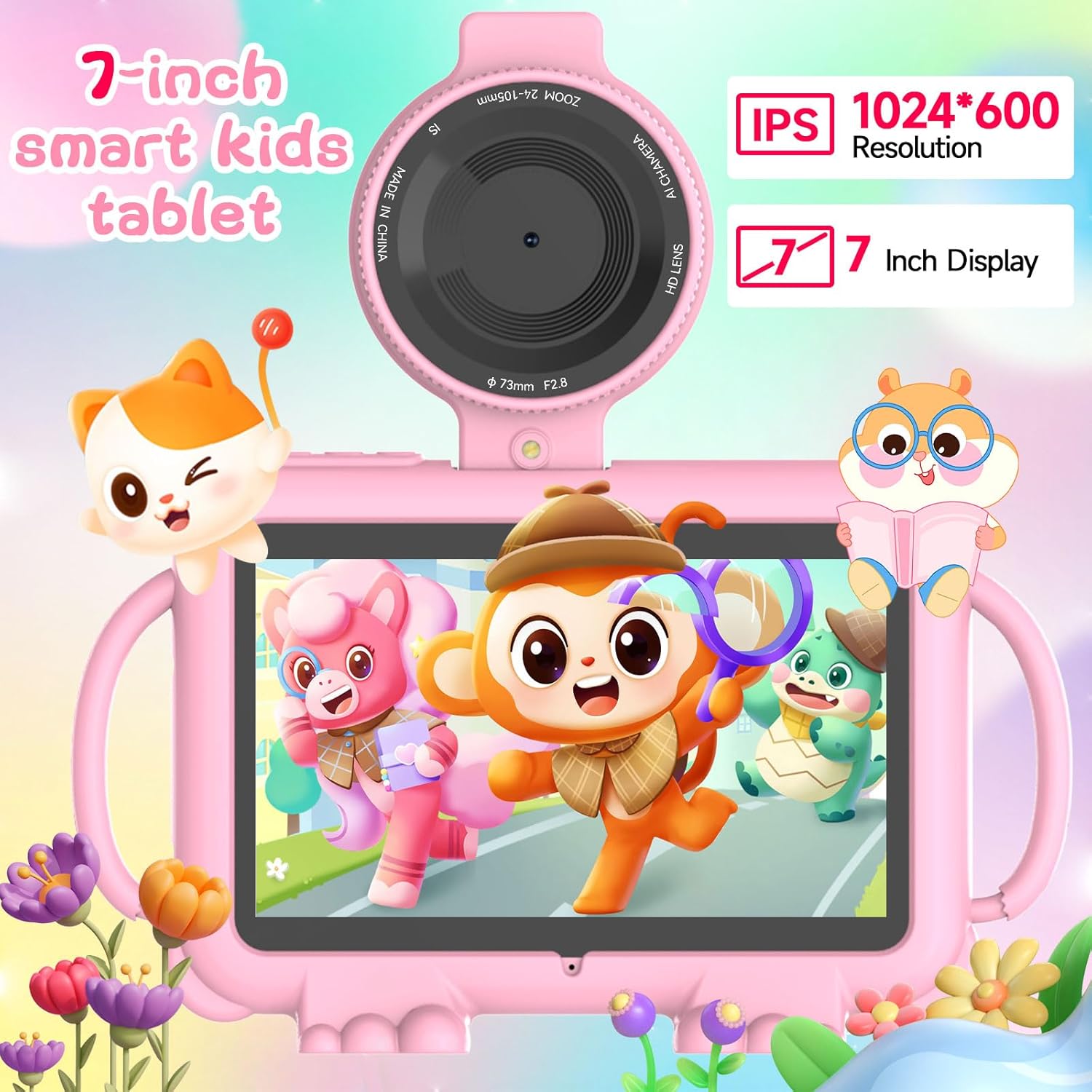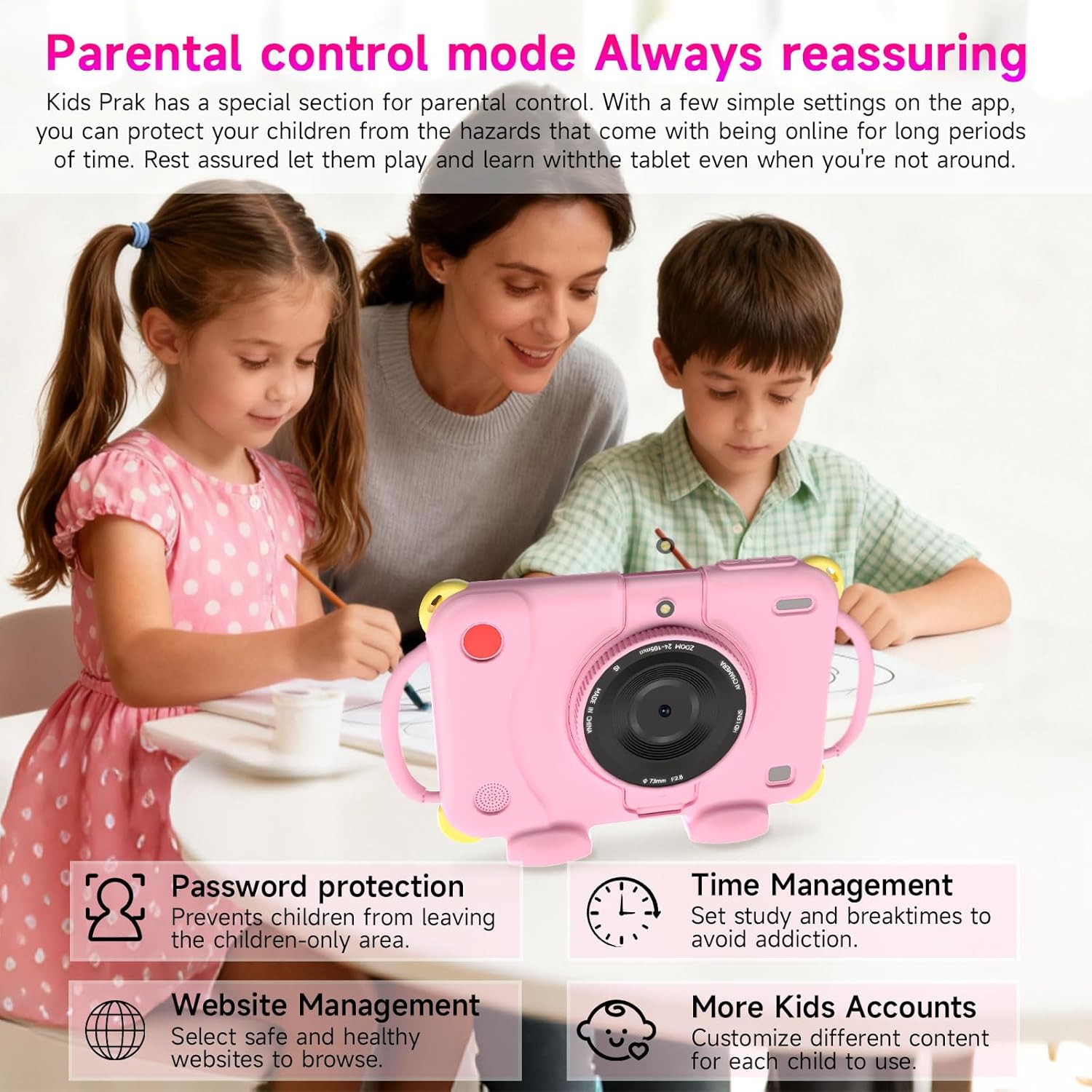 本製品の最大の魅力は、初めてデジタル機器に触れる子供たちにとって「ちょうど良い」機能とデザインがバランス良く詰まっている点です。単に安いタブレットというだけでなく、目を引く鮮やかなピンク色のボディは、子供の所有欲を満たす愛らしい仕上がりとなっています。