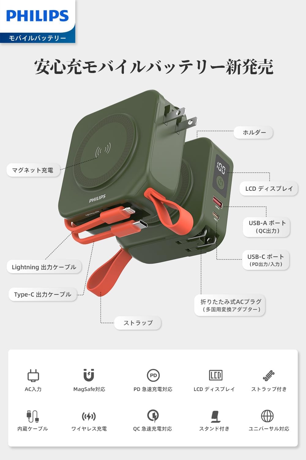 3. 安心感を重視するユーザー: 130年以上の歴史を持つPhilipsのブランドと、過不足ない10000mAhの容量、そして多機能性による「備えあれば憂いなし」の安心感を求める方。