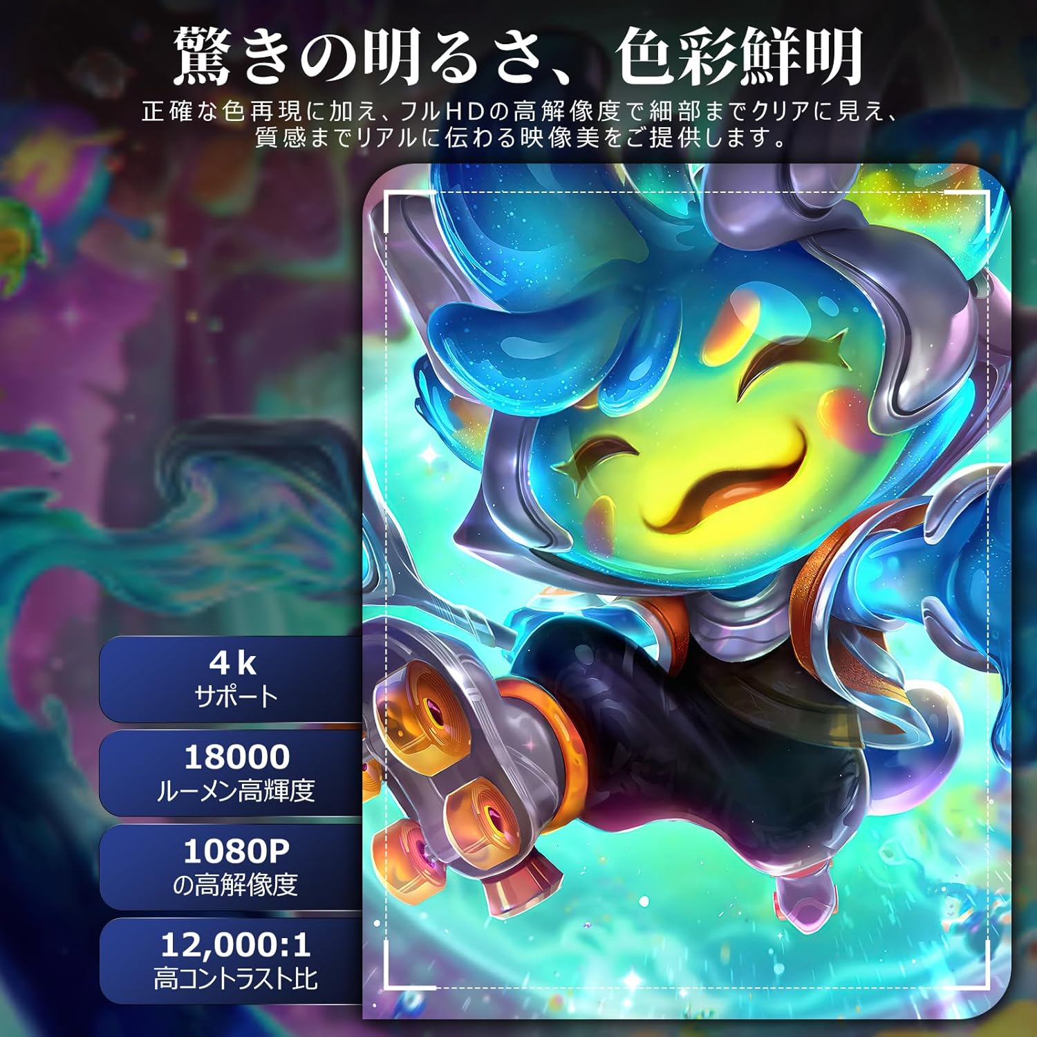 • 特徴:18000ルーメン高輝度, 4K対応, 270度回転, Android TV搭載, Bluetooth5.4 & 高音質HI-FIスピーカー内蔵, Wi-Fi内蔵