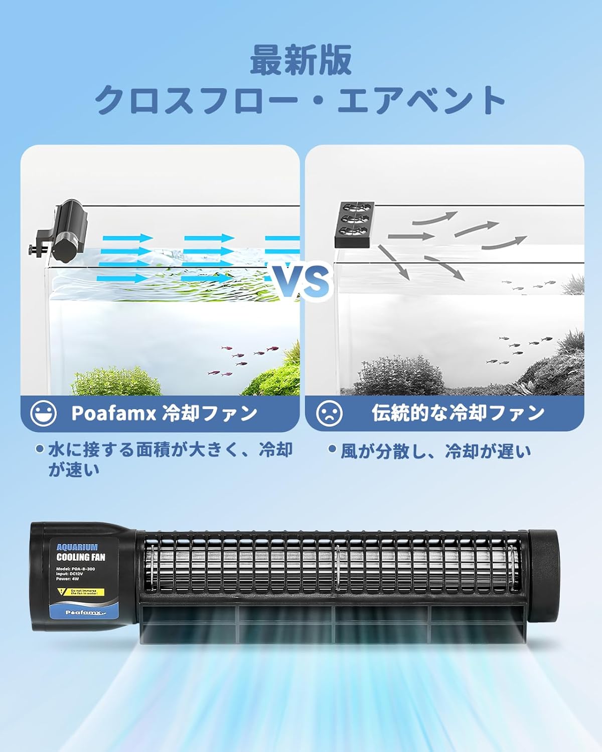 ここでは、Poafamx「MFY-FS」と、日本のアクアリウム市場で主流となっている大手メーカー(GEX、テトラ、コトブキ工芸など)の冷却ファンを多角的に比較します。
