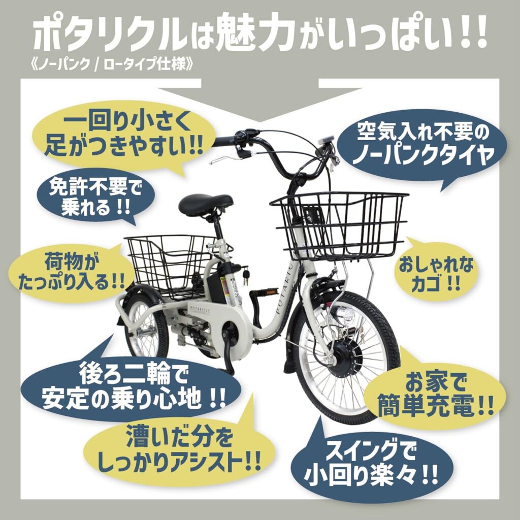 商品紹介:POTARICLE 電動アシスト自転車 3輪 POT-18EBN-GI