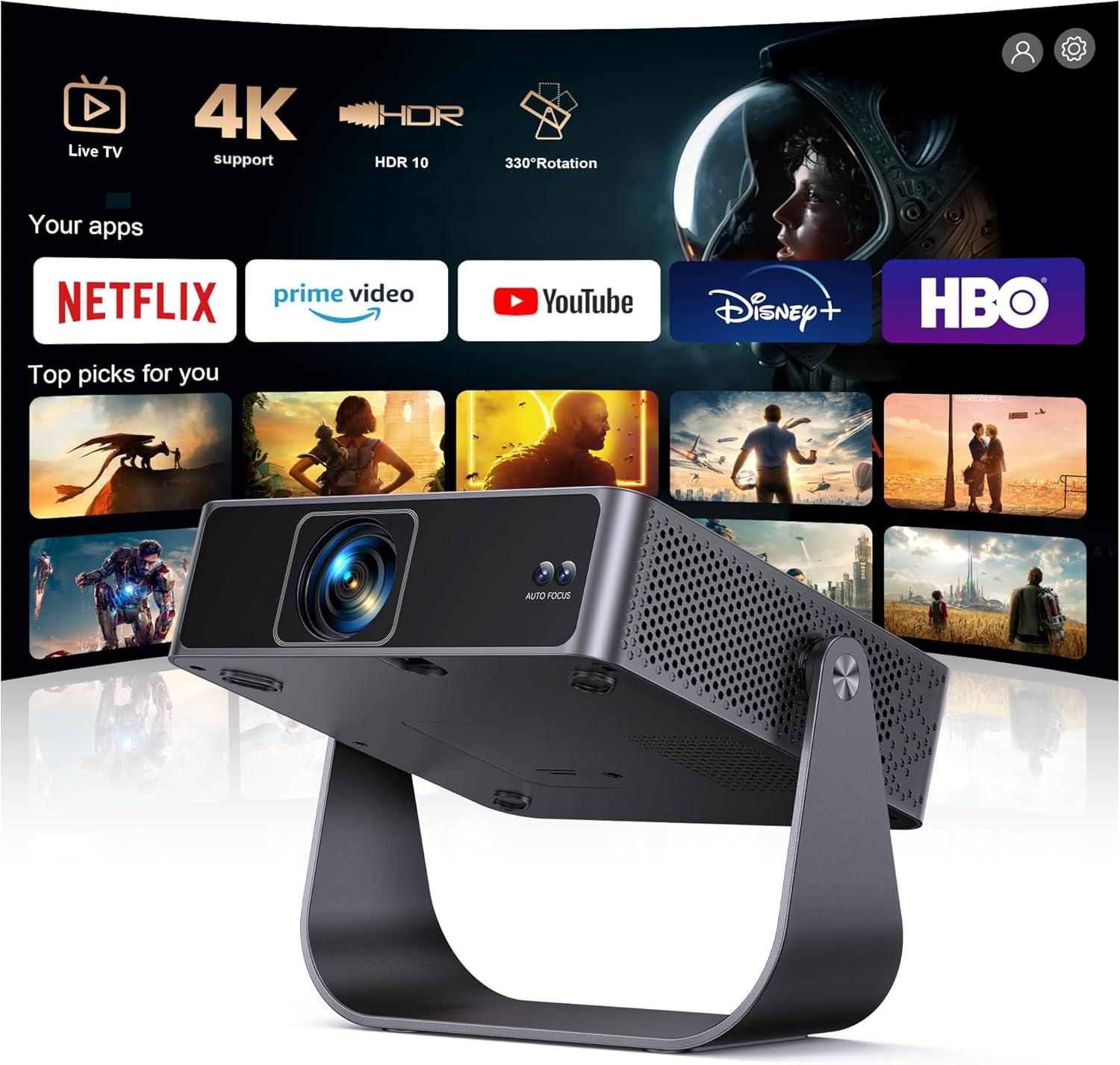 まず特筆すべきは、AI搭載の自動設定システムです。オートフォーカス、自動台形補正、障害物回避、自動画面適応という4つの機能が連携し、設置場所を選びません。天井に逆さまに設置しても、壁の角に斜めに置いても、わずか数秒で最適な映像に自動調整されます。プロジェクター初心者にとって最も煩わしい「ピント合わせ」や「台形補正」から解放されるのは大きなメリットです。