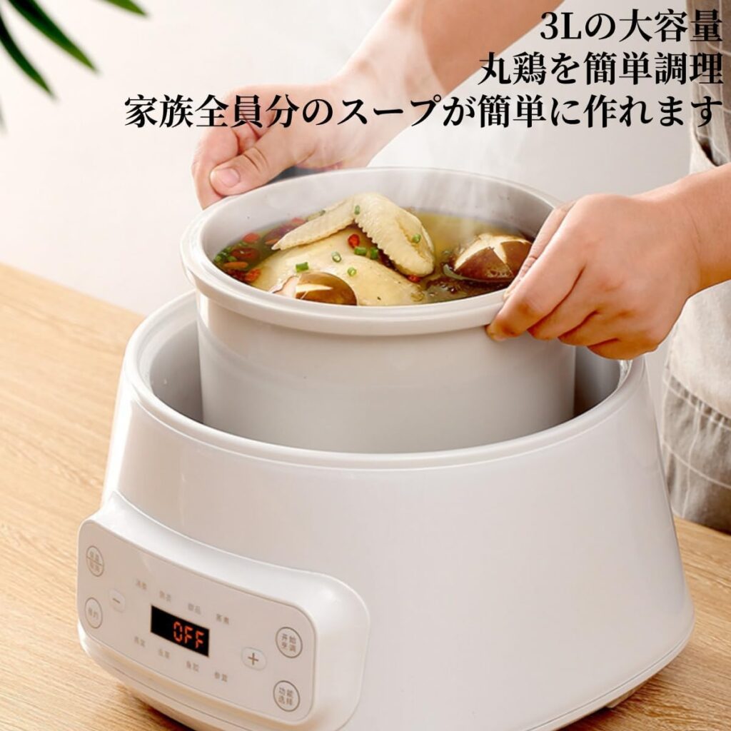 さらに、その真っ白で清潔感のあるデザインと、奥行き29cmというコンパクトさから、調理後はそのまま食卓の中心に置いても全く違和感がありません。これは、調理と盛り付けを兼ねる「テーブルクッキング」のトレンドに完全にマッチしており、忙しい共働き世帯や、小さな子どものいる家庭にとって、洗い物を減らすという実用的なメリットも提供します。定格電力300Wという低消費電力設計は、「エコで節約」を重視する現代のライフスタイルにも適しており、「寝る前にセットしておけば、朝には美味しいお粥ができている」といった時間の有効活用も可能にします。ユーザー視点で言えば、この鍋は「手間暇を味方につける、おしゃれな時短ツール」として、キッチンでの満足度を大きく引き上げてくれるでしょう。
