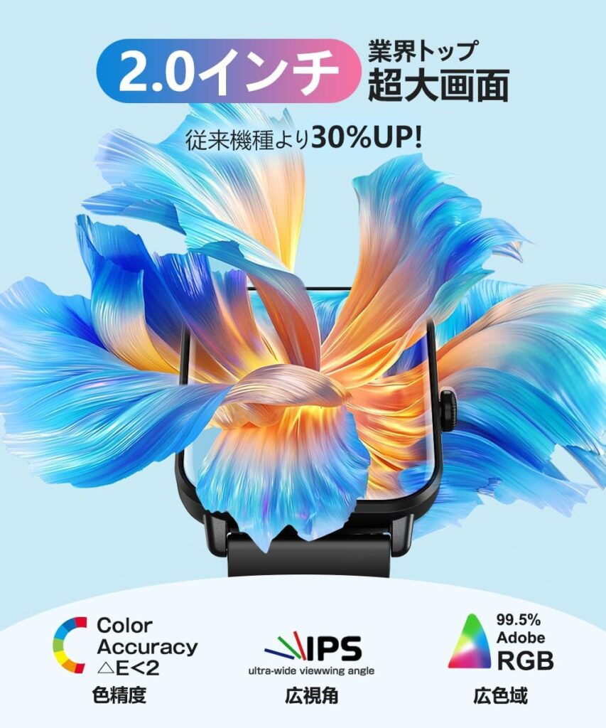 「2.0インチの大画面は想像以上に見やすく、老眼気味の私でも通知の文字がはっきり読めて助かっています」