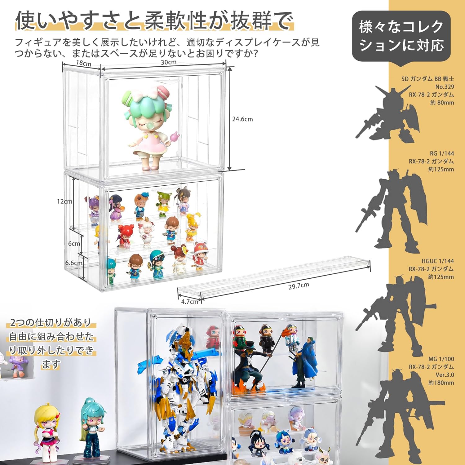 「コレクションが増えてきたので拡張性のあるケースが欲しい」「卓上で気軽に飾れるサイズを探している」