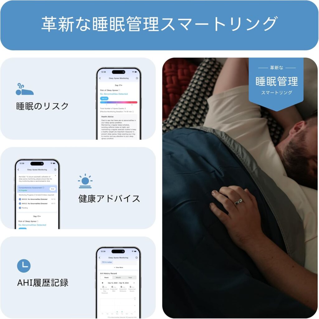 「アプリの睡眠分析がとても詳細で面白いです。特に『いびき検知』機能は、自分では気づけない睡眠の質を客観的に知ることができ、生活習慣を見直すきっかけになりました。」