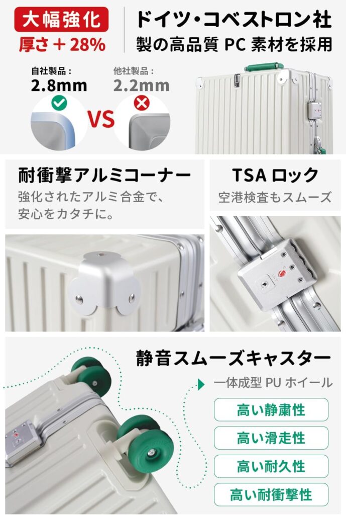 「初めてのスーツケース購入でしたが、基本的な機能は揃っており、コストパフォーマンスに満足しています」
