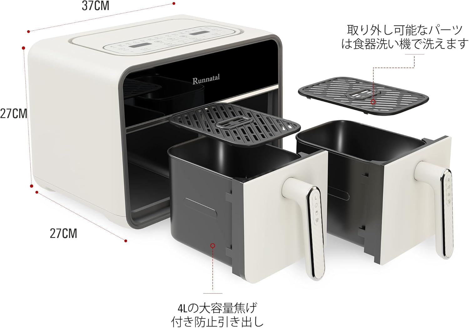 このAF7003-PEは、なんと8リットルという、まるで家族全員の夕食を一度に賄えるような大容量。さらに、まるで二つの調理器を使い分けるかのようなデュアルゾーン機能も搭載しています。しかし、「Runnatal?どこの国のブランド?」と首をかしげる方も多いはず。