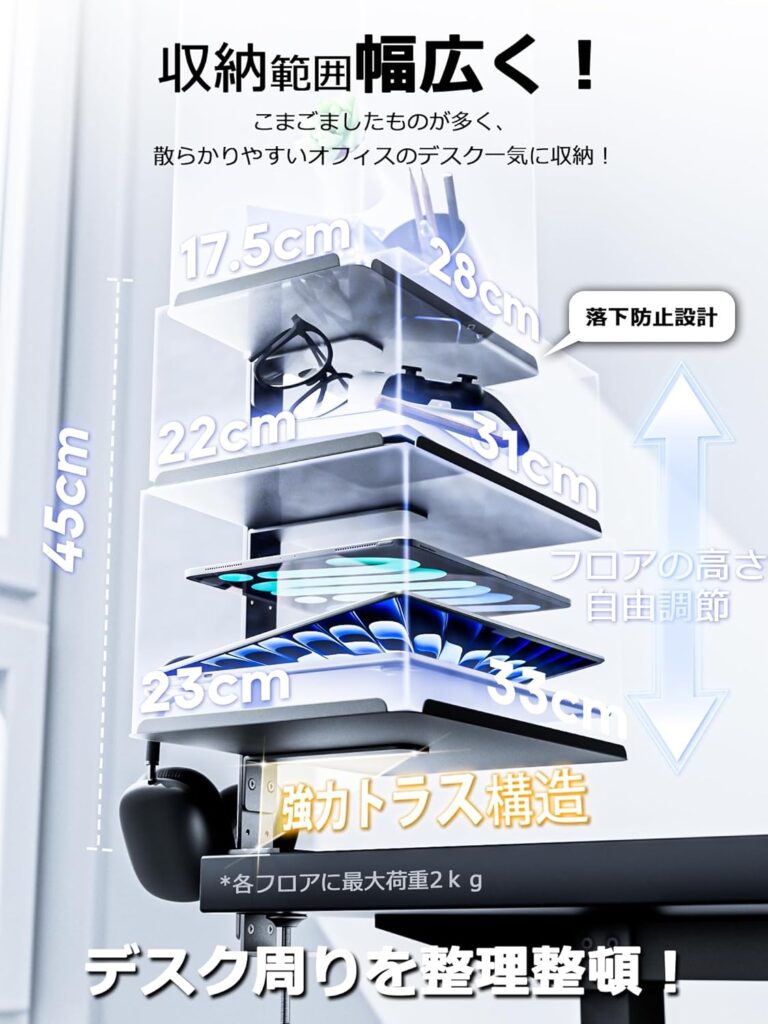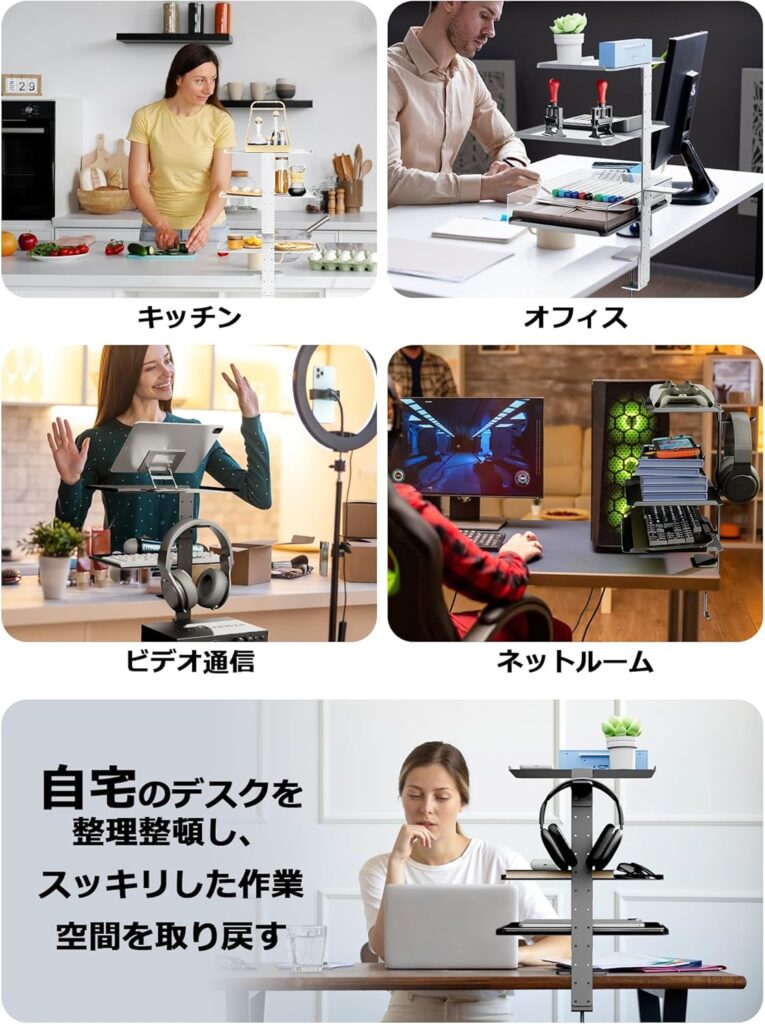 クランプ式で穴あけ不要、さらに3段階で高さを自由に調節できるこの収納ラックは、まるでデスクの余白をそっと押し広げてくれるような存在として、ECサイトのレビュー欄でも話題となっています。
