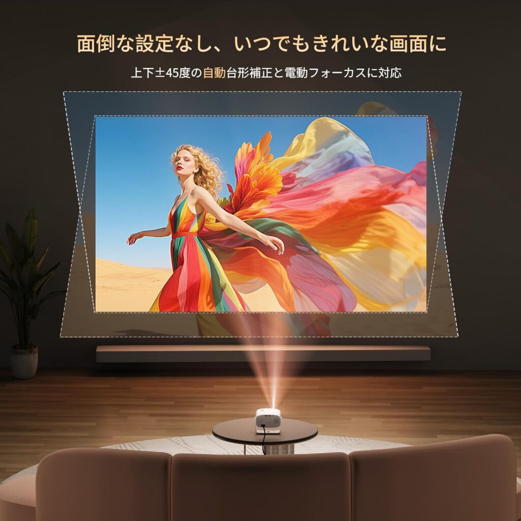 まず、モバイルプロジェクターの王者とも言えるAnkerのNebulaシリーズと比較してみましょう。Anker製品の最大の強みは、Android TVというOSが内蔵されている点です。これにより、プロジェクター単体でNetflixやPrime Videoのアプリを起動できます。また、オートフォーカスや自動台形補正といった「失敗しないための機能」が極めて充実しています。