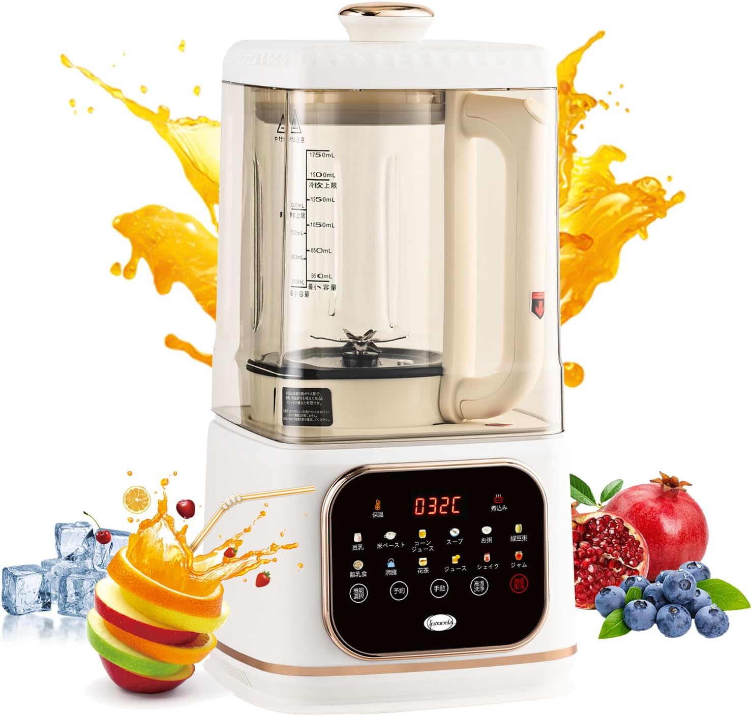 基本仕様: 多機能ジューサー(豆乳メーカー・ミキサー・ジューサー・スムージーメーカー機能を1台で完結)。