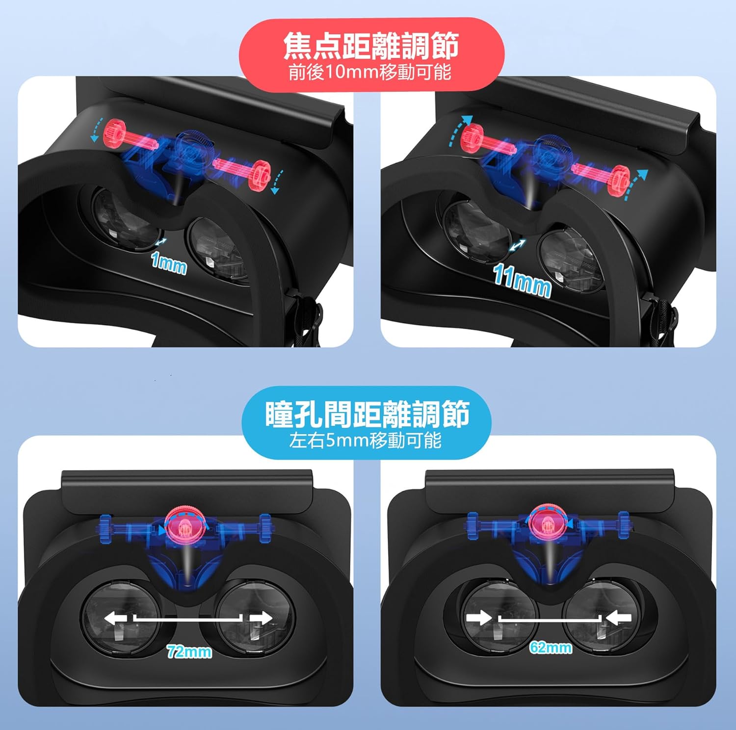 - 「IPD(瞳孔間距離)が調整できるため、自分にぴったりのピントに合わせやすく目が疲れにくいと感じます」