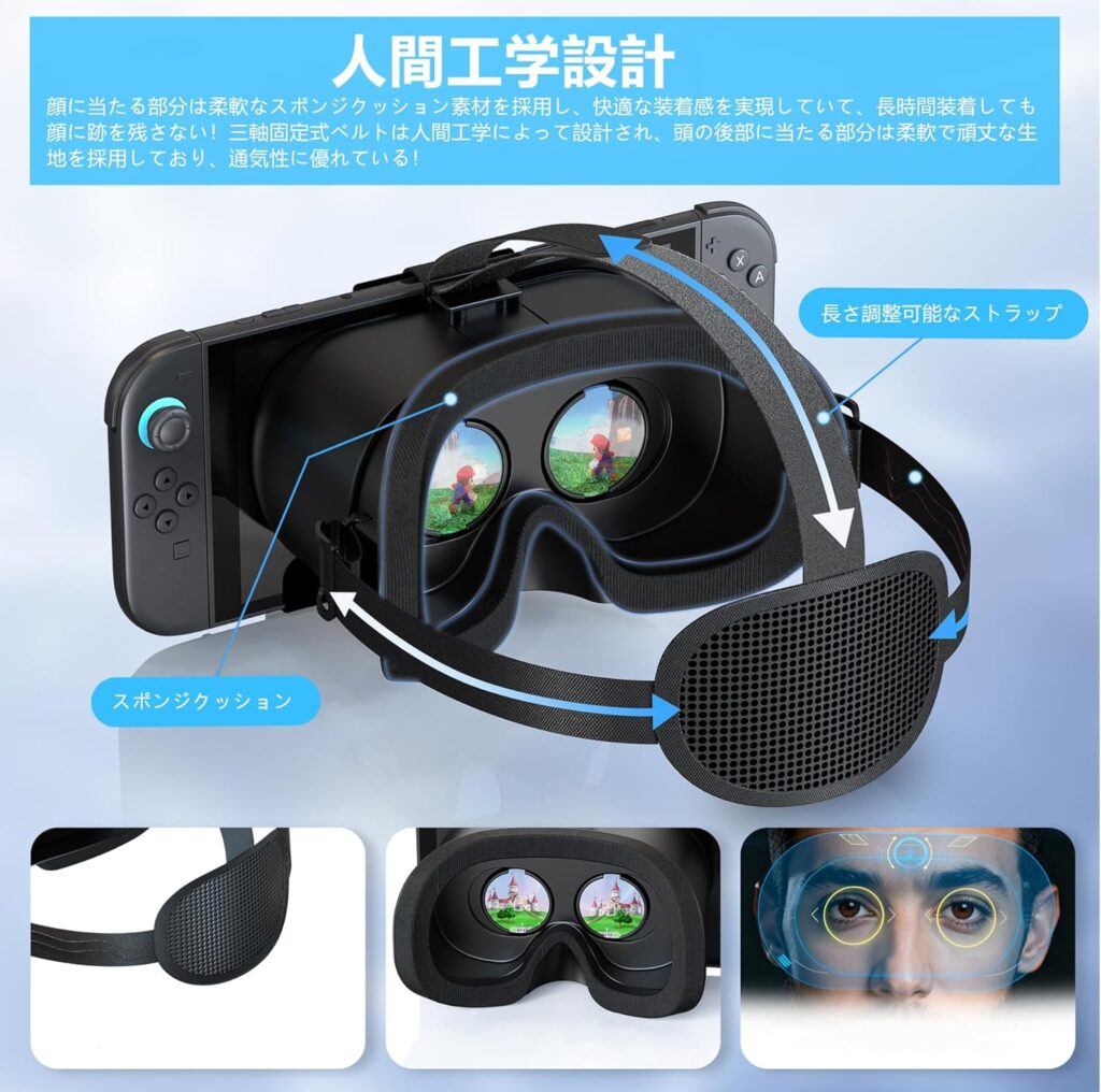 - 「あくまでSwitchの画面を利用するため、最新のハイエンドVR機のような超高精細さを期待しすぎるとギャップを感じます」