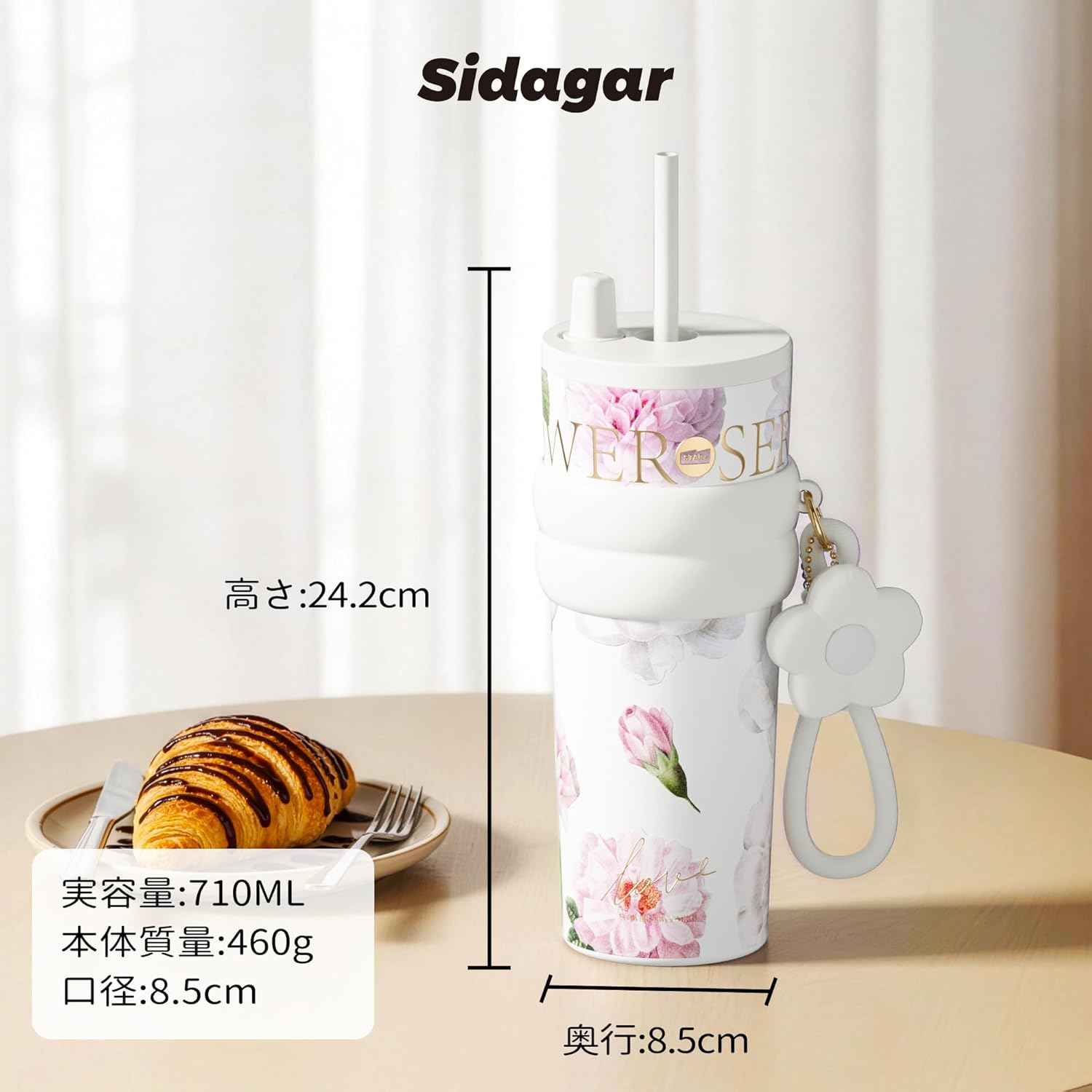 Sidagar 水筒710mlの最大の魅力は、「おしゃれと実用性が両立している」という一点に尽きます。 一般的に水筒というと、機能一辺倒で見た目は二の次になりがちですが、この製品はモダンで洗練されたデザインを採用しており、まるでファッション小物のような存在感があります。 ホワイトカラーの本体はオフィスでもカフェでも違和感なく馴染み、持っているだけで気分が上がるという声も少なくありません。
