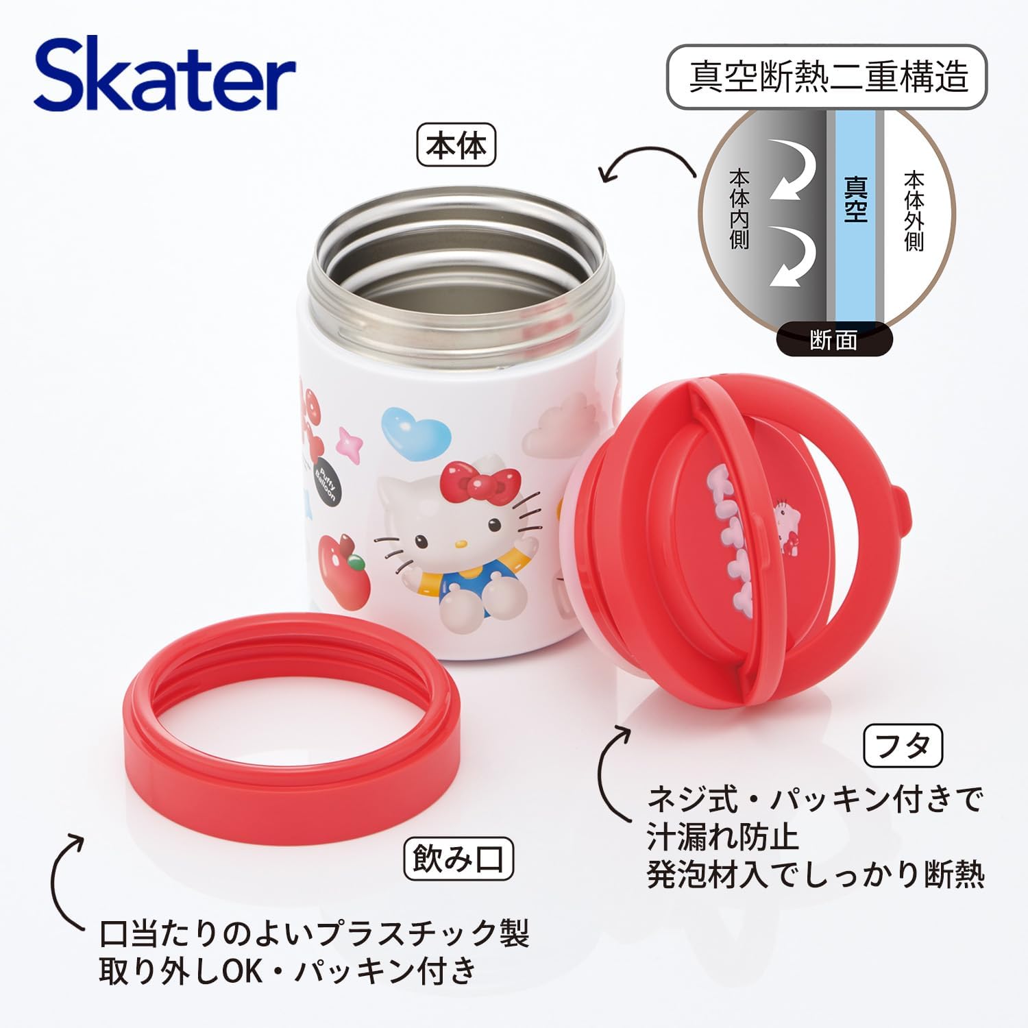 この商品の最大の魅力は、「機能性とキャラクター愛の両立」にあります。通常、高機能なスープジャーは無骨なデザインになりがちですが、本製品はハローキティという強力なビジュアルを持ちながら、実用的な500mlの容量を確保しています。