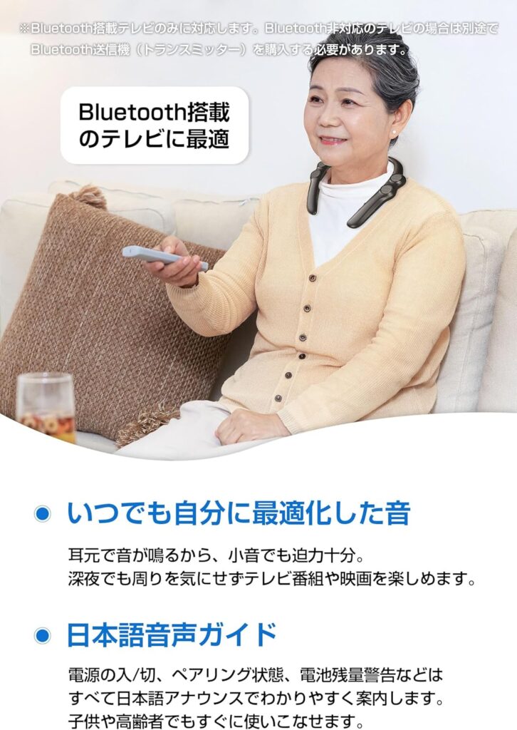 ソニーやシャープといった国内大手ブランドのネックスピーカーは、1万5,000円から3万円を超える価格帯が主流です。これらと比較すると、skybest SK04-2は「圧倒的な導入のしやすさ」が際立ちます。大手製品は専用送信機による低遅延技術やハイレゾ対応など、高付加価値を追求していますが、skybestは「日常使いに十分な性能を、誰もが買える価格で」という点にフォーカスしています。YouTubeの視聴や一般的な映画鑑賞であれば、skybestのサラウンド性能でも十分にその恩恵を享受できます。