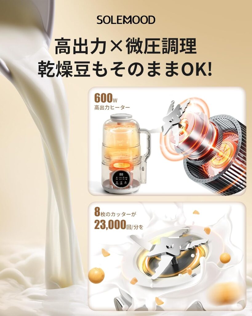 本記事では、SOLEMOODというブランドの素顔から、SOLEMOOD豆乳メーカーの実力、さらには他社製品との比較まで、丁寧に掘り下げてご紹介していきます。