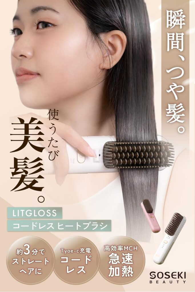 コードレスヒートブラシは、近年多くのブランドから登場しており、まさに群雄割拠の状態です 。その中でSOSEKIの「LITGLOSS」は、デザイン性の高さと、200℃まで対応するしっかりとしたスタイリング機能を両立させている点で、独自のポジションを築いています 。