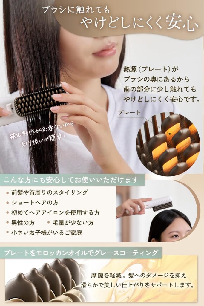 「不器用な私でも、とかすだけで自然なストレートに。アイロンみたいに火傷の心配が少ないし、髪がツヤツヤになる感じがします。」