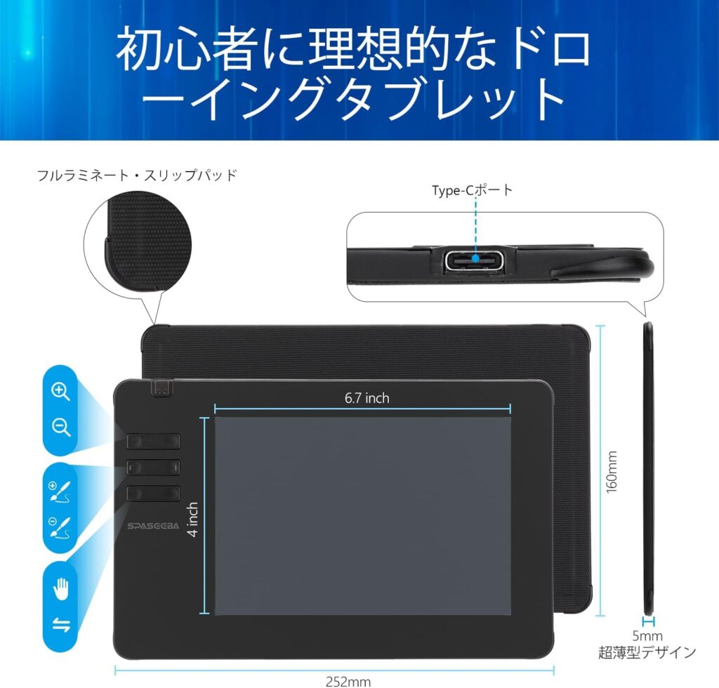 Spaseeba T605は「板タブレット」であるため、画面を見ながら手元でペンを動かすという慣れが必要です。しかし、この方式には「自分の手で画面が隠れない」「正しい姿勢で描けるため首や肩への負担が少ない」という、健康面および作業効率面での大きなメリットがあります。すでに持っているPCやスマホを活かして、数千円でこの環境を構築できるSpaseebaは、高価なiPadを購入する前の「お試し」としても機能します。