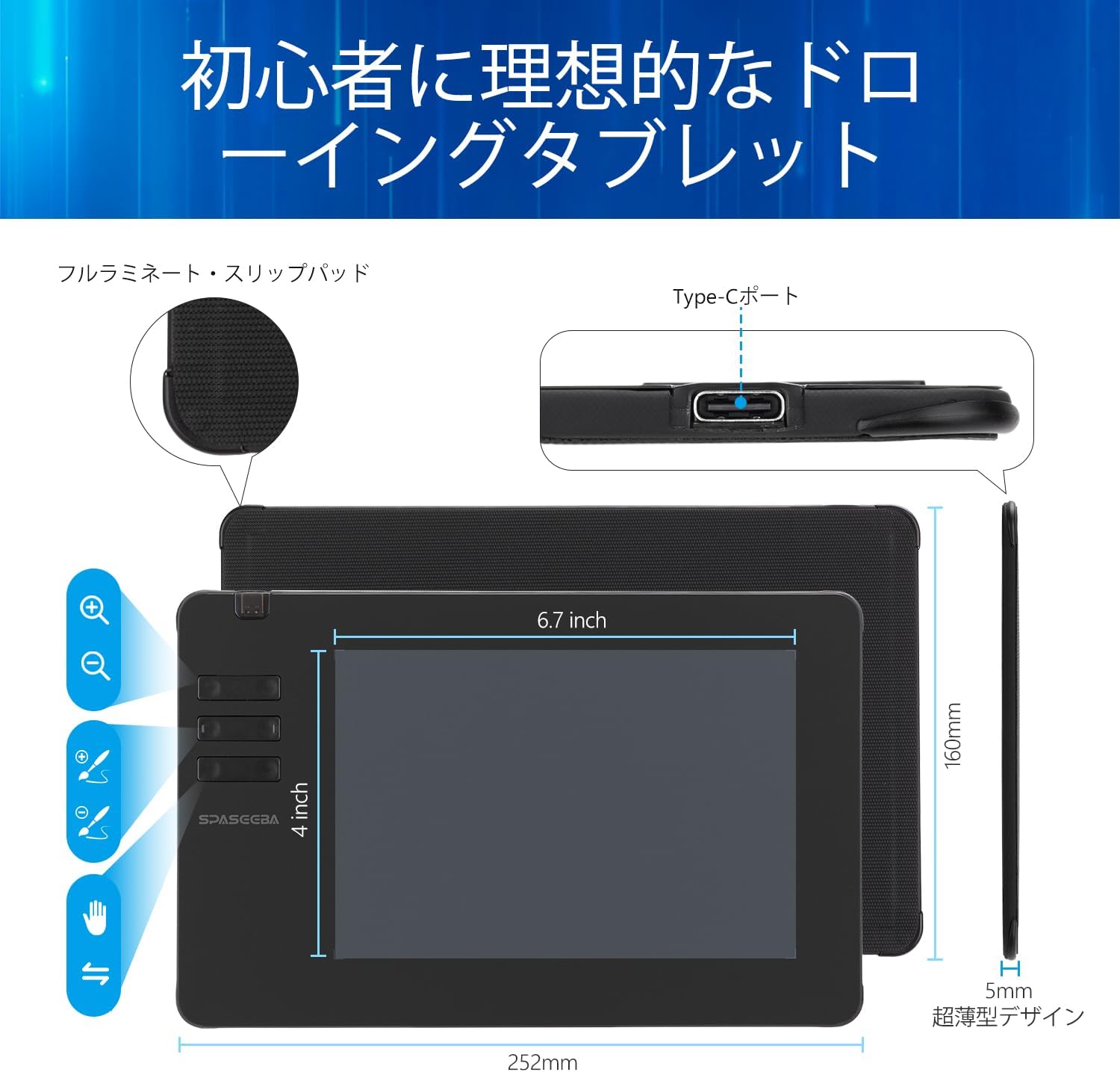 XP-PENの「Deco mini」シリーズやHuionの「Inspiroy」シリーズとSpaseeba T605を比較すると、スペック上の数値(筆圧感知8192レベルなど)はほぼ互角です。しかし、XP-PENやHuionは日本国内にサポート代理店や公式ストアを持っており、日本語でのサポート体制やドライバの更新頻度において、Spaseebaよりも一日の長があります。