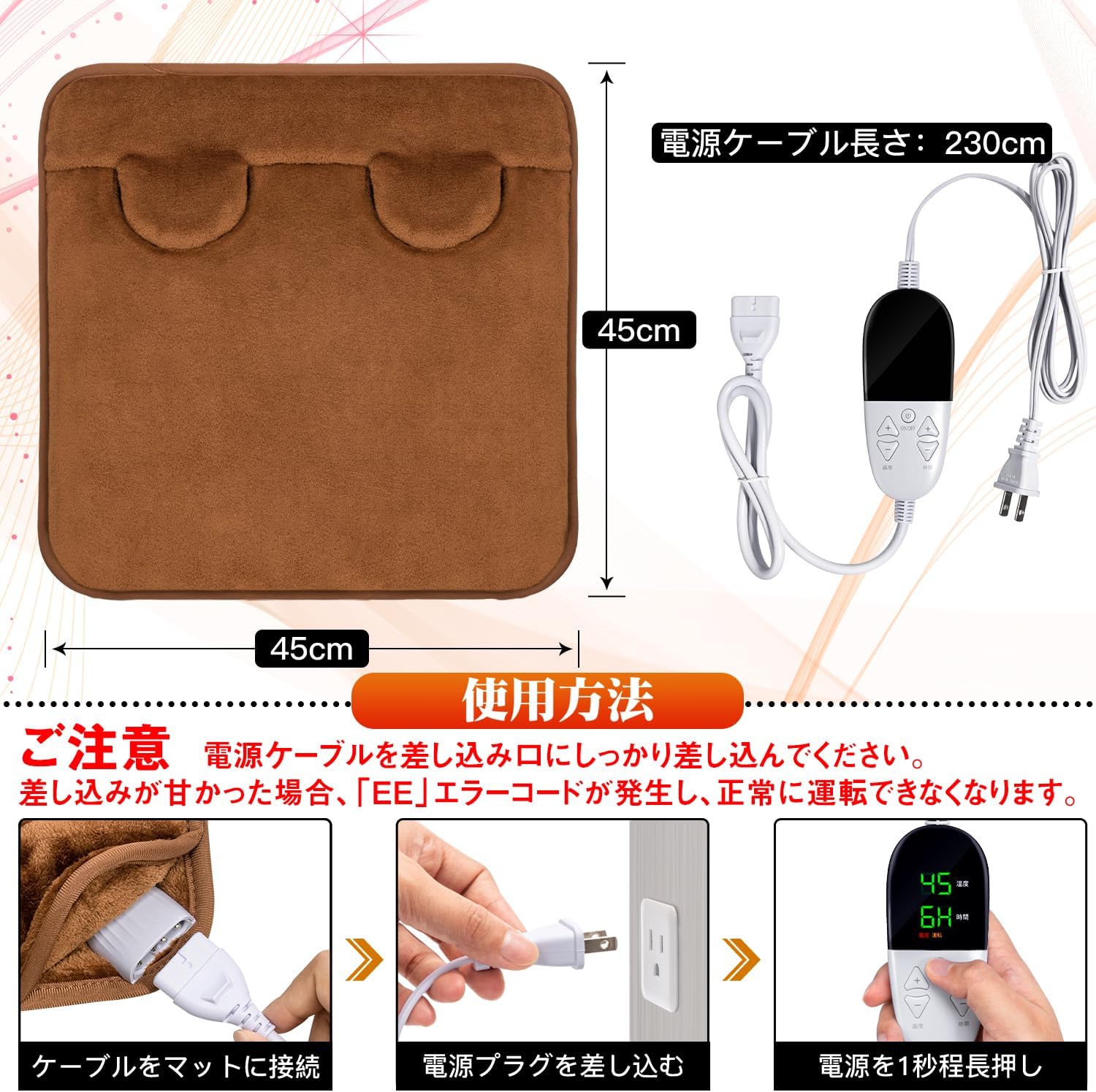 一般的なフットウォーマーや足温器は、電源のオン/オフと、高・中・低の3段階程度の温度設定機能のみを持つシンプルな設計のものが多いです。しかし、Sumeriy K8は、オンオフタイマー機能が標準搭載されている点で優位性を持っています。