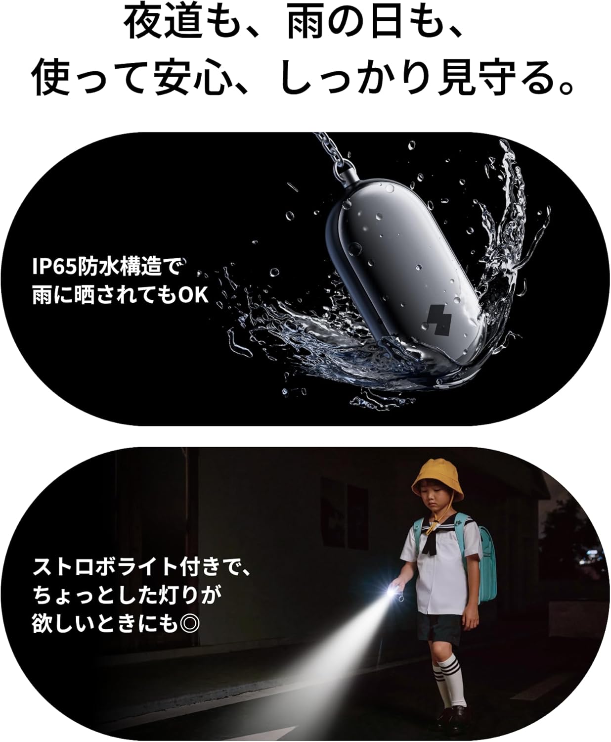 一方で、ユーザー視点に立つと「安全を守るための重要情報が不足している」という点が気になります。防犯ブザーの心臓部とも言えるアラーム音量(デシベル数)や、雨天時でも安心して使えるかを示す防水性能についての記載が、提供されたスペックの中には見当たりません。これらは、万一の事態に自分の身を守るためのデバイスとして、購入前に必ず確認したい最重要項目です。