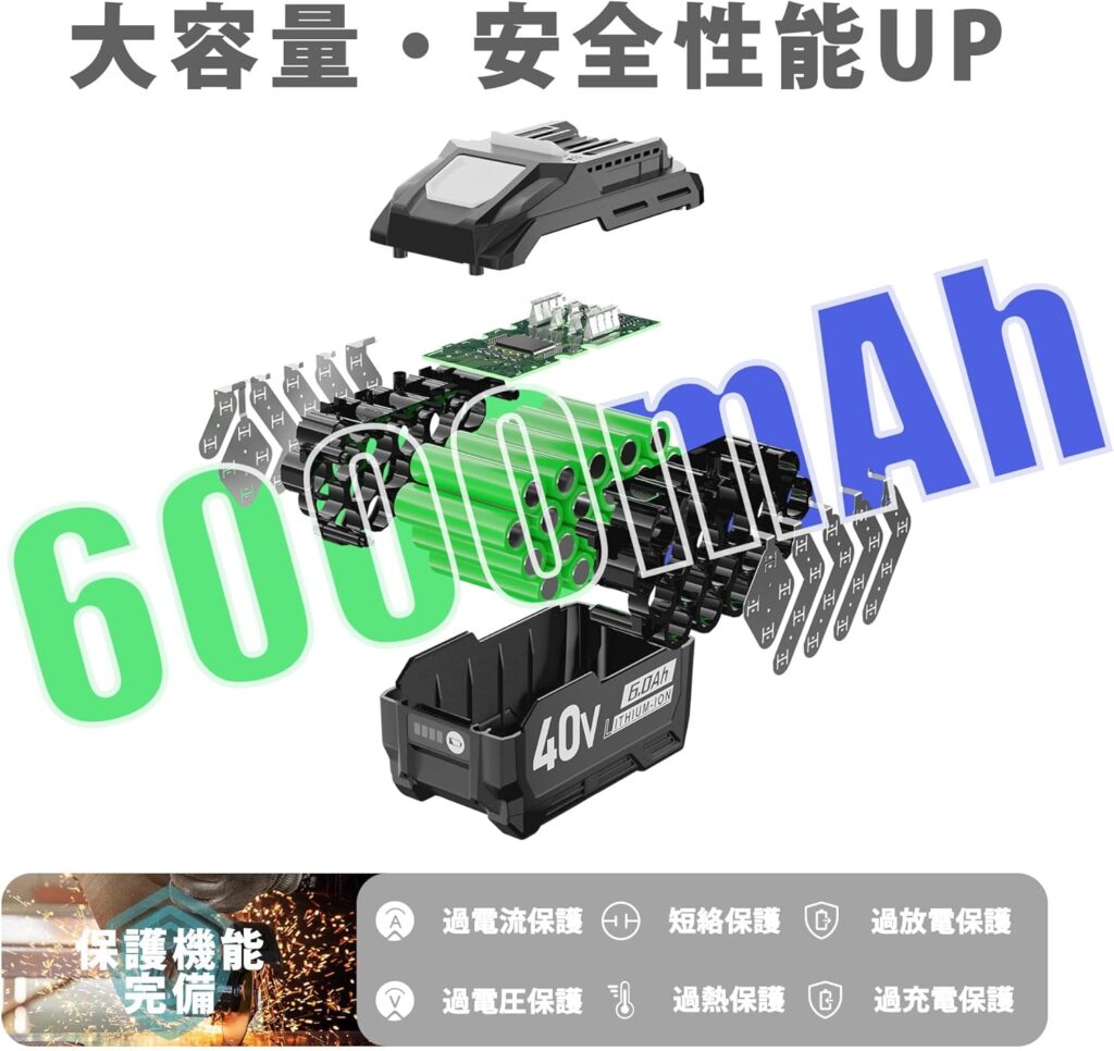 - その他 機能:マキタ40V電動工具のバッテリー交換用で、高容量6000mAh