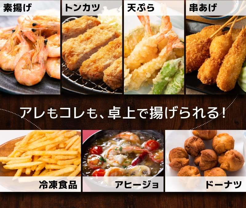 手軽な食卓調理(卓上利用):油ハネが少なく、コンパクトなため、キッチンで揚げて皿に盛り付けるという手間を省き、食卓の真ん中で揚げたてをすぐに楽しめる「ライブ感」を提供します。これは、揚げ物を単なる料理から「イベント」へと昇華させる力を持っています。
