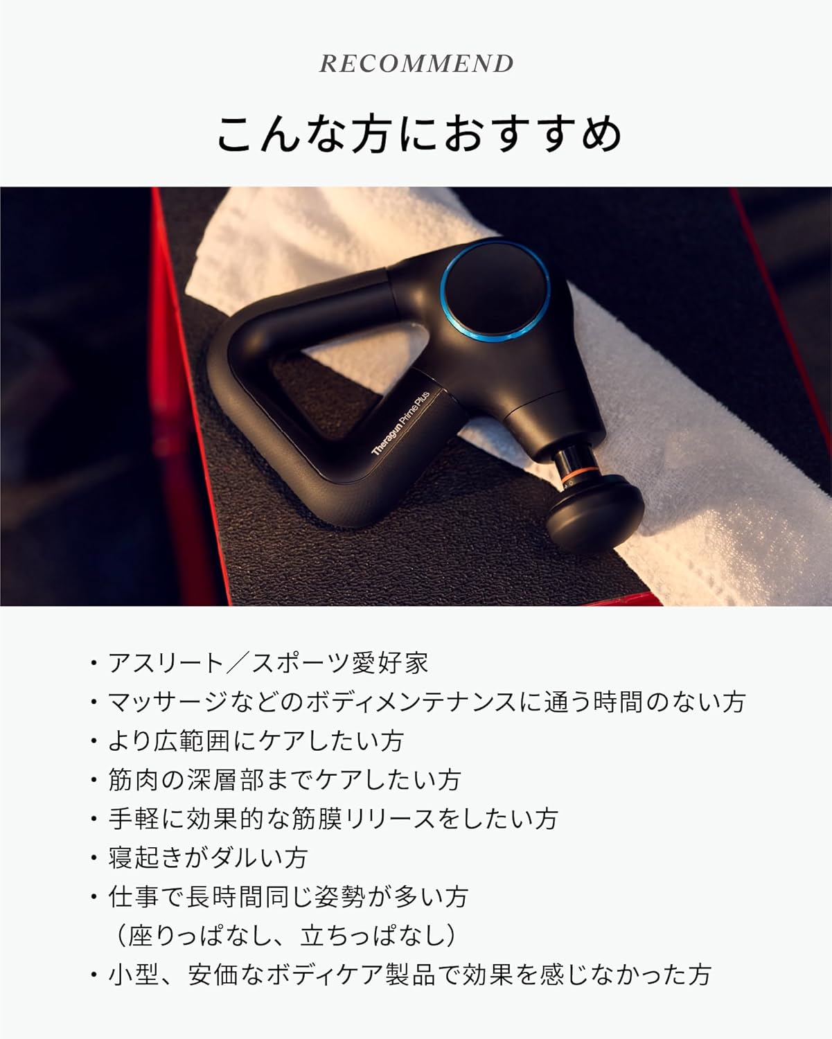 現在、Therabody社は世界中のプロスポーツチームやトップアスリートと提携しており、その科学的根拠に基づいたアプローチは医療現場やフィットネス業界からも高く評価されています。日本では、スポーツプロテクト分野で定評のある「ユナイテッドスポーツブランズジャパン」がメーカーとして流通を担っており、国内のサポート体制も整っている点が特徴です。