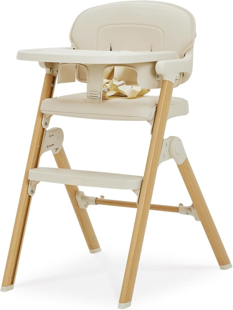 ストッケの「トリップトラップ」に代表される老舗製品は、天然木の質感を前面に押し出し、数十年使い続けることを前提とした重厚な作りが特徴です。これに対し、Thinkmaxは「今、この瞬間の使いやすさとトレンド」に特化しています。木目調の脚を採用することで、天然木のような美しさを維持しつつ、手入れのしやすさや軽量化を実現しています。本物の木は湿度や汚れに敏感ですが、Thinkmaxの素材選択は、食べこぼしが日常茶飯事の離乳食期において、ストレスフリーなメンテナンスを提供します。