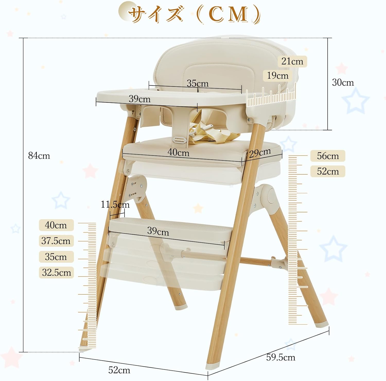 一方で、奥行きが59.5cmあるため、設置には一定のスペースが必要です。日本の都市型マンションなど、限られたダイニングスペースでは通路を圧迫する可能性があります。また、木目脚は実用性を重視した素材選択の結果ですが、天然木ならではの経年変化や質感を重視する方にとっては、人工的な印象を受ける場面があるかもしれません。ベルトの調整範囲についても、非常に小柄な赤ちゃんの場合は、一番きつく締めても少し余裕が出てしまうケースが見受けられます。